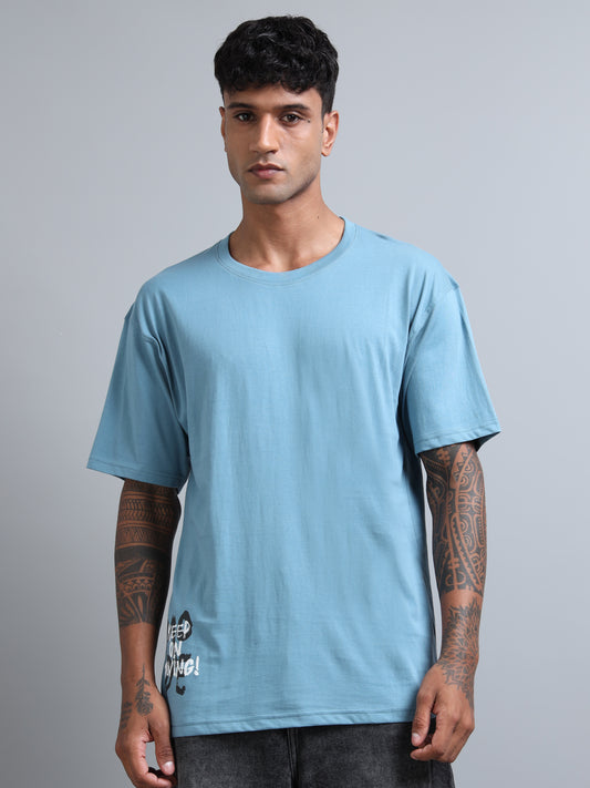 Trendy Men’s Oversized Tee – Sky Blue Drop Shoulder Back Print Streetwear T-Shirt