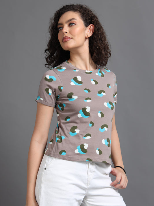 Womens Printed Brown Croptop Tshirt
