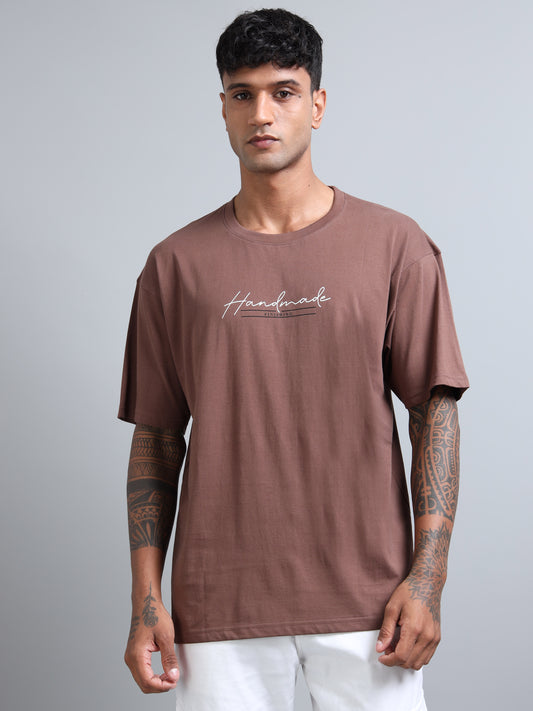 Coffee Brown Oversized T-Shirt for Men – Pure Cotton Drop Shoulder Streetwear Tee