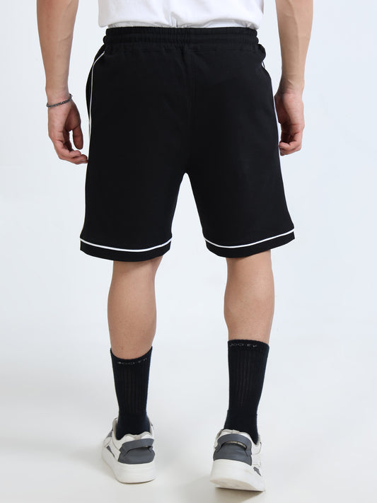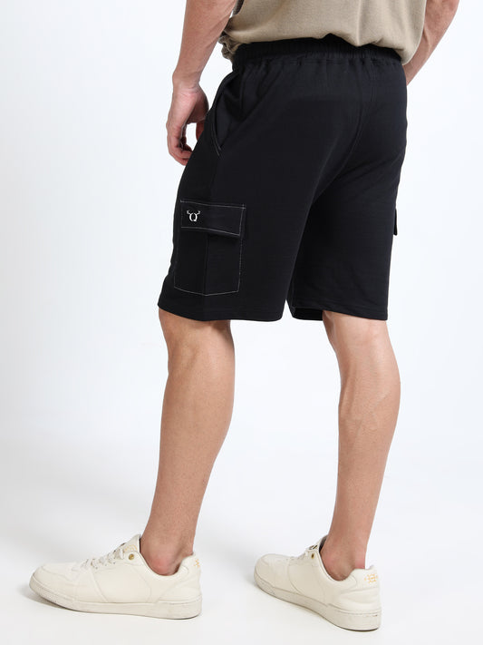 Self Design Men Black Casual Shorts