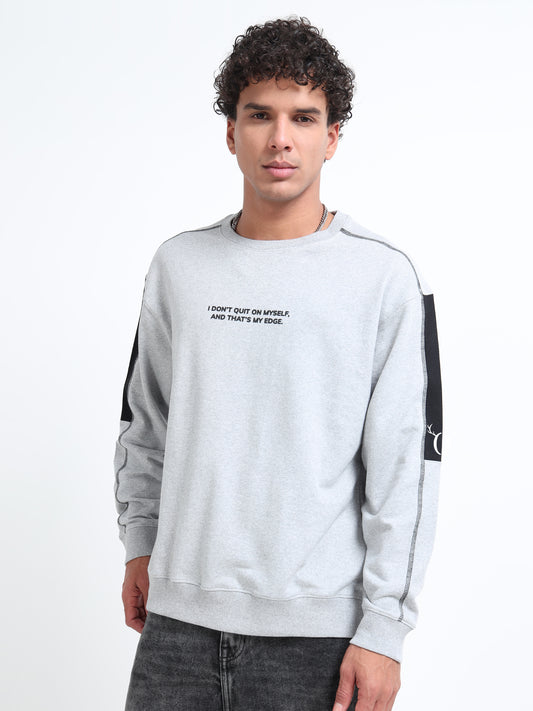 Men’s Grey Oversized Sweatshirt | Motivational Printed Round neck Pullover