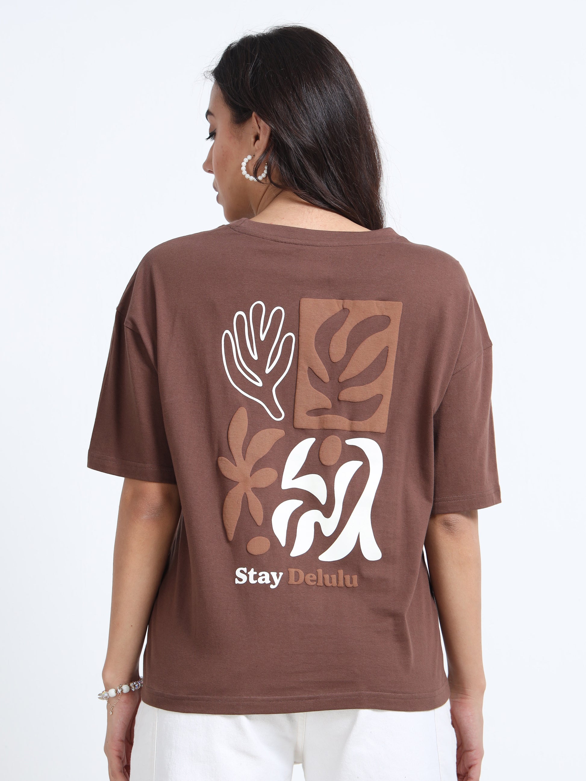 Women’s Oversized Brown Tshirt – Stay Delulu Graphic Tee