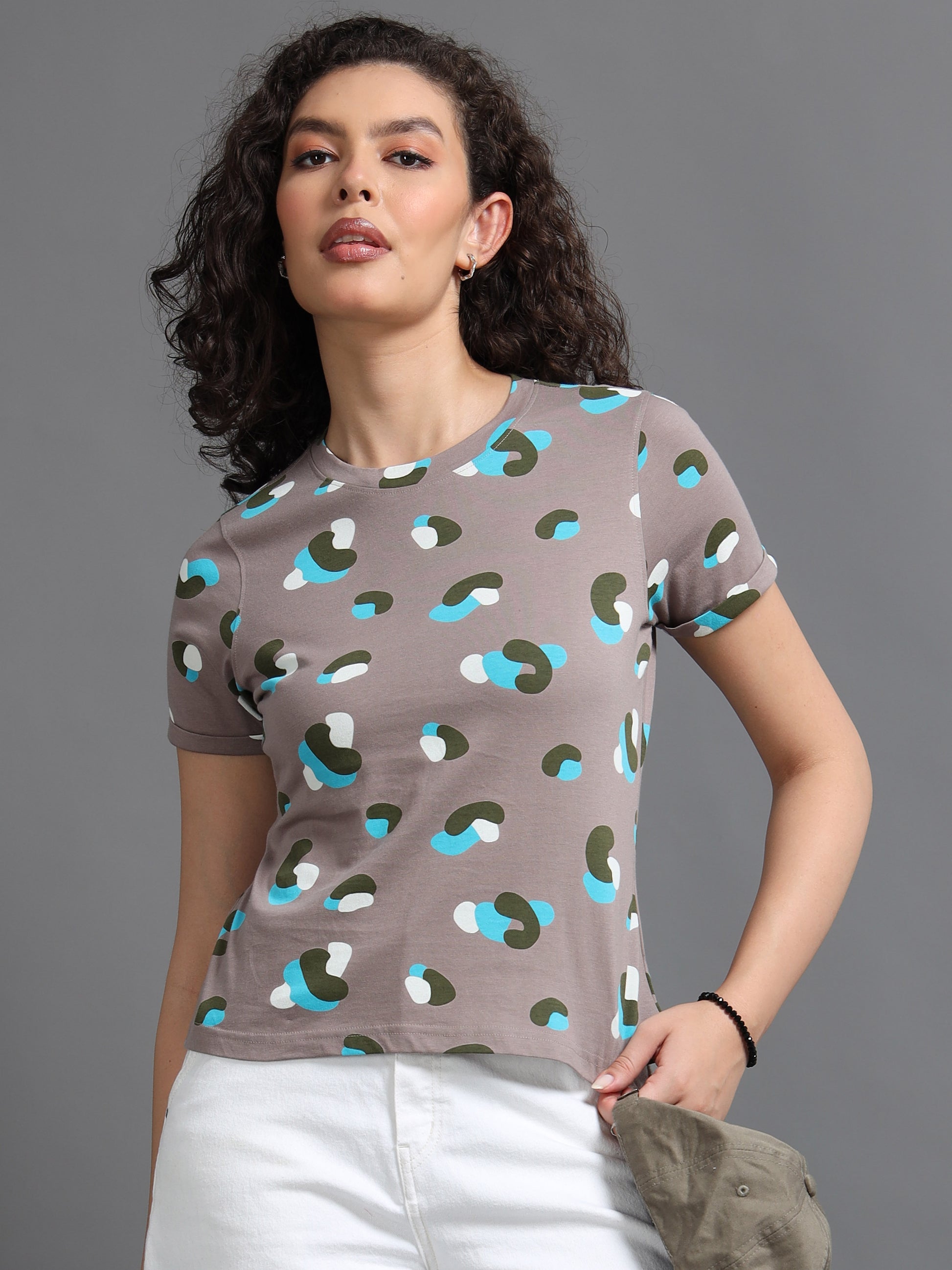 Womens Printed Brown Croptop Tshirt